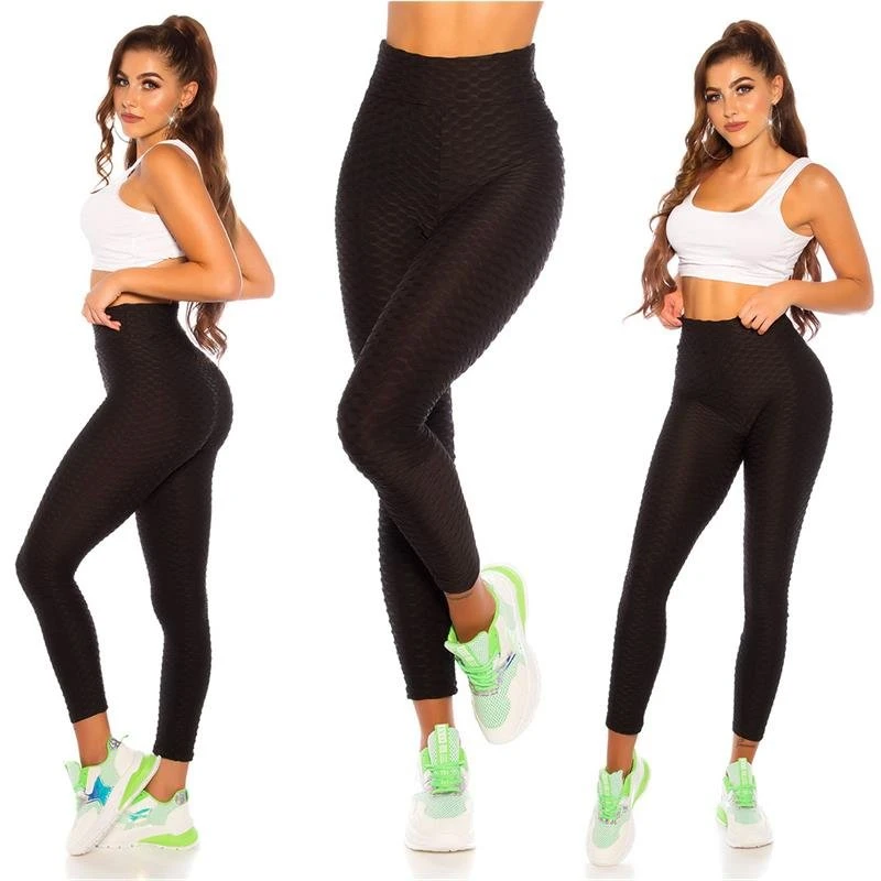 - Sexy Damen Sport-Leggings aus angenehmem Stretch-Material mit hohem Taillenbund und erhabenem Muster