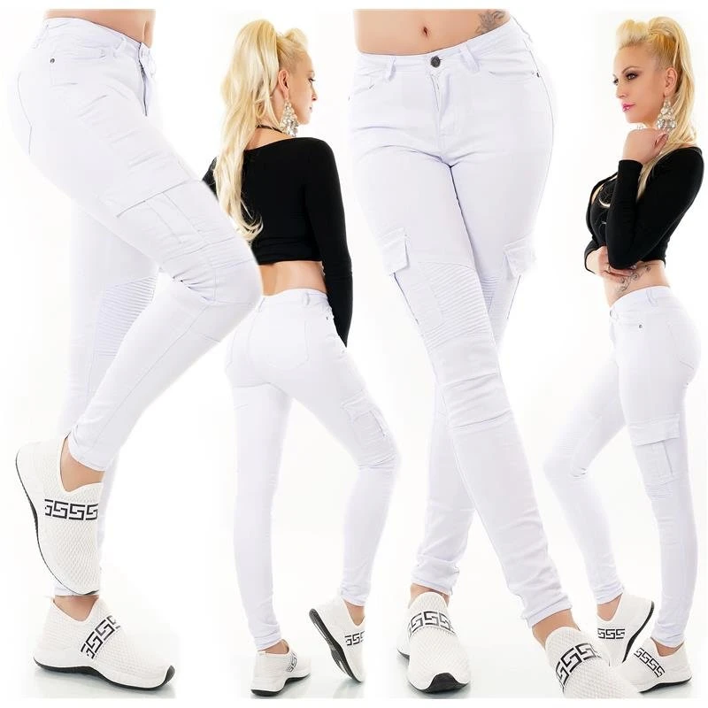 - Stylische enganliegende 5-Pocket Damen Skinny Fit Jeans mit seitlichen Cargotaschen