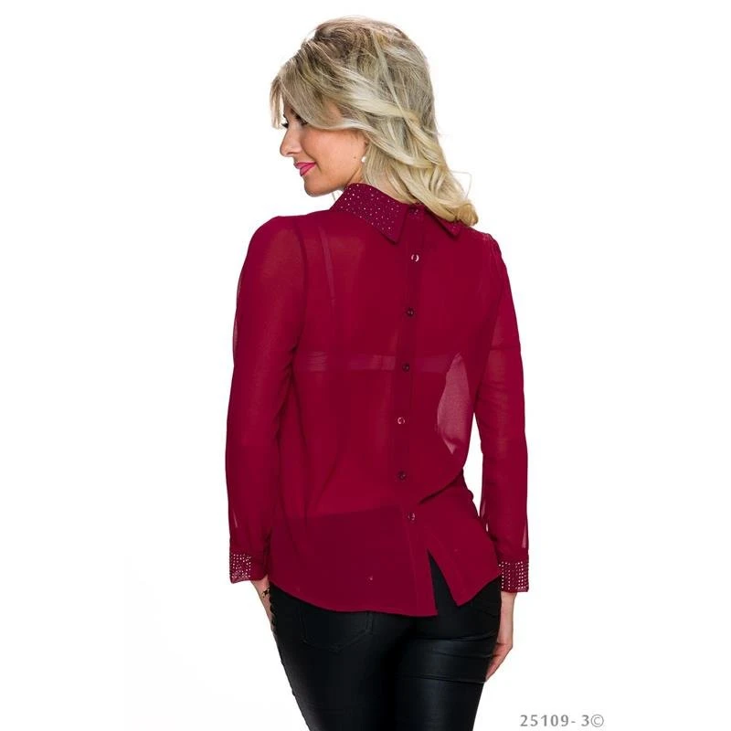 - Glamouröse Bluse aus transparentem Chiffon mit langen Ärmeln und spitzem Kragen