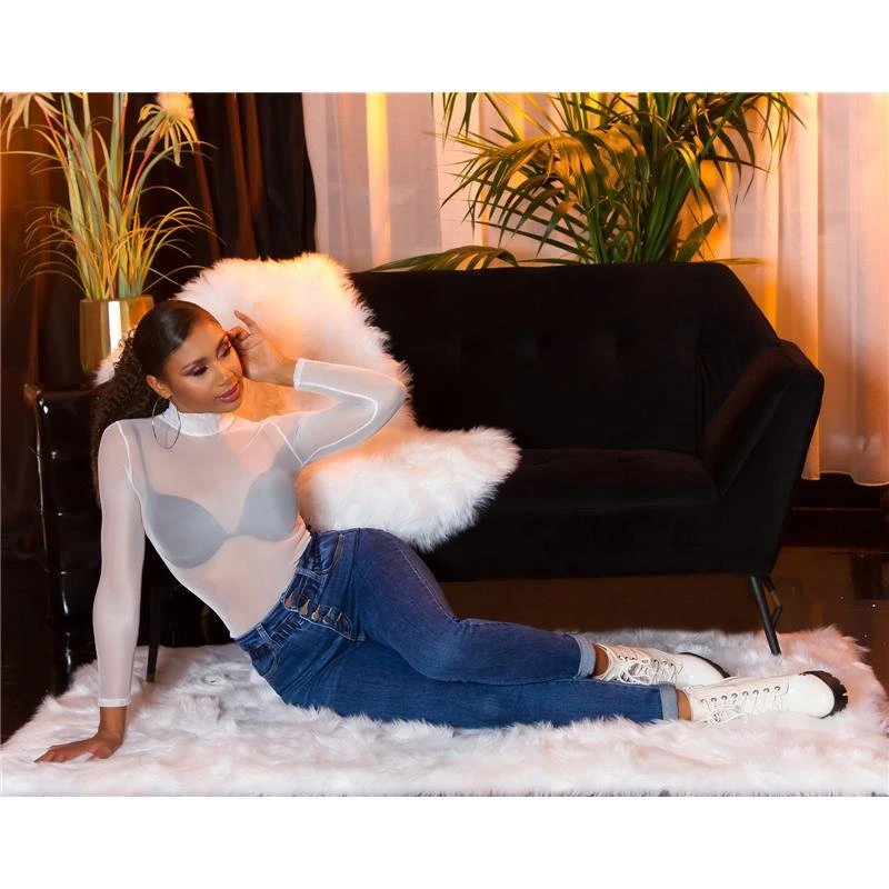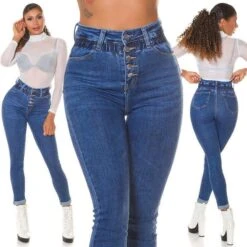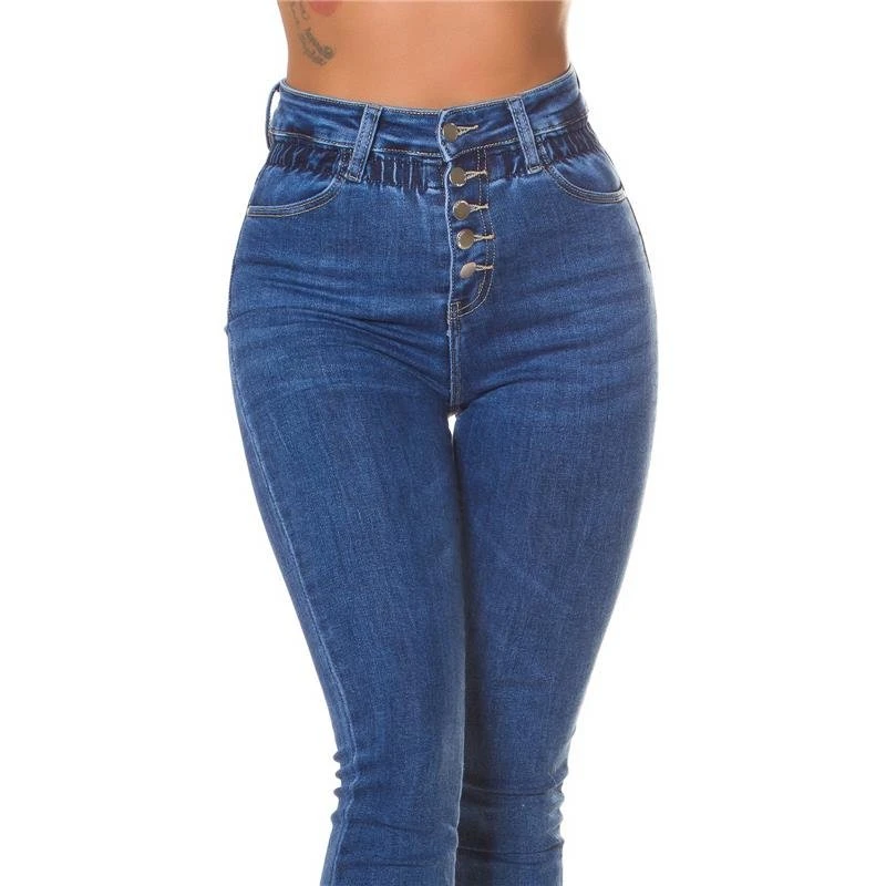 - Enganliegende Damen-Röhrenjeans mit hohem elastischem Taillenbund