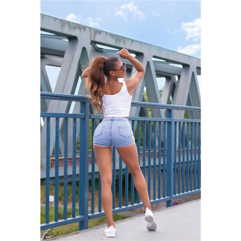 - Sexy figurbetonende Damen Basic Jeans-Shorts mit hohem Taillenbund